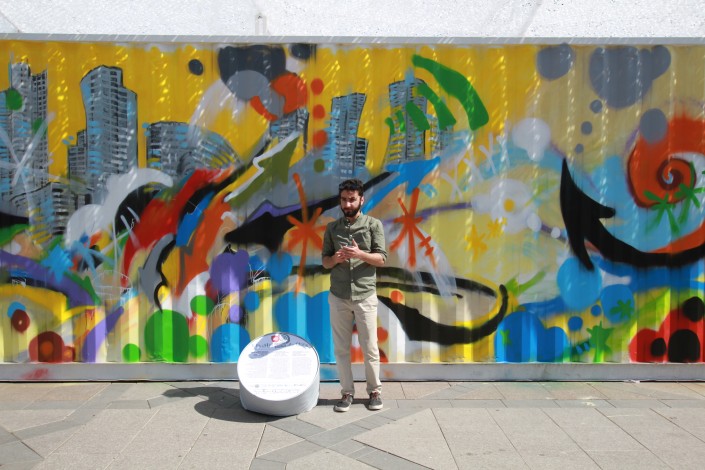 Снаружи боксы, в которых установлены интерактивные площадки, украшены современным стрит-артом, за который отвечают художники из Армении.