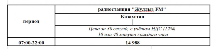 Условия и порядок предоставления эфирного времени, указанные в настоящем информационном сообщении, могут корректироваться в соответствии с требованиями уполномоченных органов Республики Казахстан.