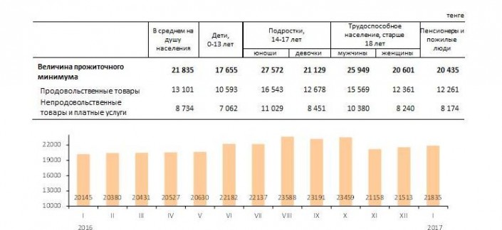 составила 21 835 тенге. Из них 13 101 тенге предусмотрено на продукты питания, остальные 8 734 тенге на непродовольственные товары и платные услуги.