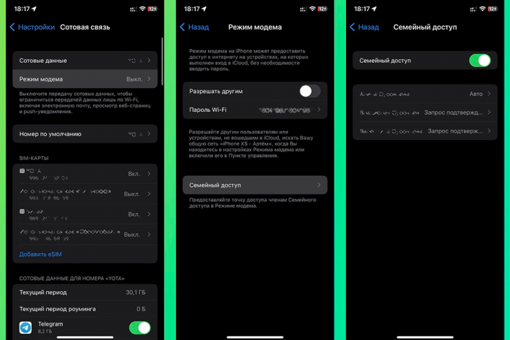 Удобная фишка экосистемы Apple позволяет автоматически делиться мобильным трафиком в режиме точки доступа с членами семьи. Это удобно, но в таком режиме расходовать мегабайты могут даже без вашего ведома.