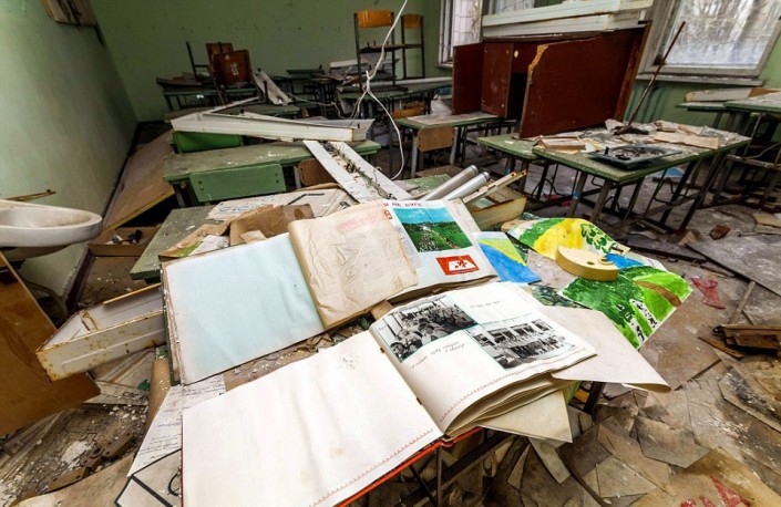 От некогда процветающего города Припять, где проживали 50 тысяч человек (ученые, работники АЭС и члены их семей), остались разрушенные больницы, заброшенные школы и дома, море противогазов. Город Припять остался таким же, каким он был оставлен людьми 27 апреля 1986 года.