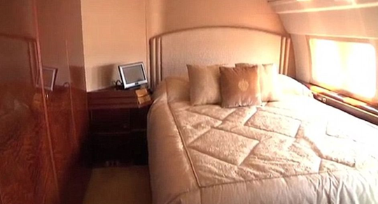 В западной прессе этот самолет называют "летающим Белым домом". Самолет разделен на несколько комнат, среди которых столовая, кухня, конференц-зал, спальня, ванная комната и даже "секретная комната" с оборудованием, защищающим самолет от слежки и прослушивания. Судно способно перевезти в общей сложности 100 человек.