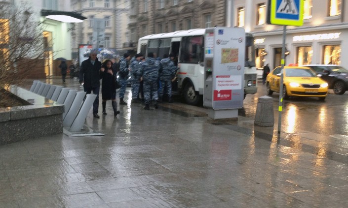 Активистов движения "СтопХам" задержали в Москве после того, как они попытались наклеить стикер на служебный автобус ОМОНа, сообщает "Блокнот".
