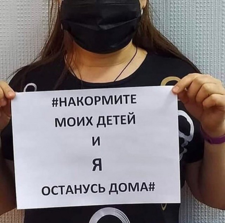Интернет қолданушылары әлеуметтік желіде өз суреттерін жүктеп жатыр. Басқа суреттерден басты айырмашылығы мұнда бәрі плакат ұстап тұрады. Плакатта биліктің "Үйде отырыңдар!" деген бұйрығына қарсы пікір жазылған. Онда "Балаларыма тамақ беріңдер, ал мен үйде отырамын!" деген жазба бар.