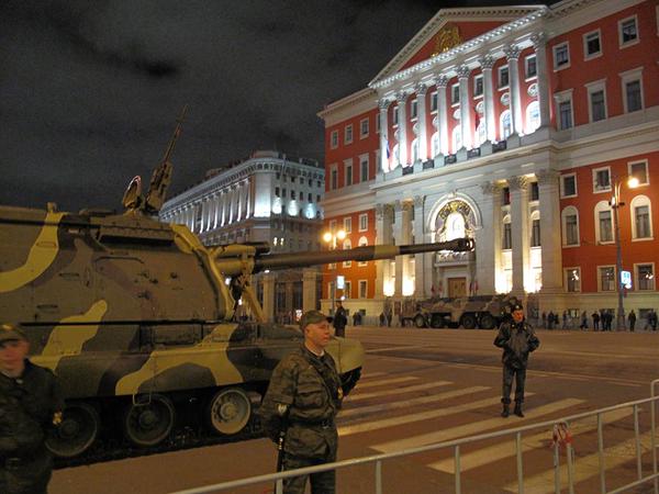 Помимо грузовиков в центр Москвы в субботу вечером заехала тяжелая военная техника. Об этом сообщают очевидцы и публикуют фото техники в соцсетях. Главный редактор радио "Эхо Москвы" Алексей Венедиктов предположил, что Кремль таким образом готовится к параду в честь празднования годовщины присоединения Крыма.