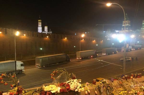 В социальных сетях и средствах массовой информации накануне активно обсуждалось появление колонны белых грузовиков возле стен Кремля. Фуры, напоминающие те, которыми россияне возят гуманитарный конвой в Донбасс, съехались к зданию в центре Москвы вечером 13 марта, сообщают "Подробности".