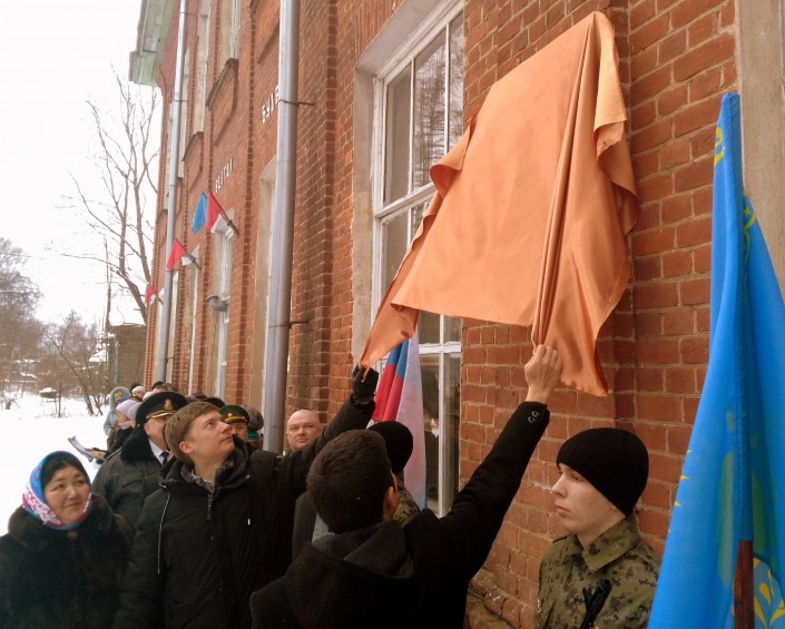 В память об Алие Молдагуловой на стене школы в селе Вятское Ярославской области установили мемориальную доску, передает Tengrinews.kz со ссылкой на пресс-службу посольства Казахстана в России.