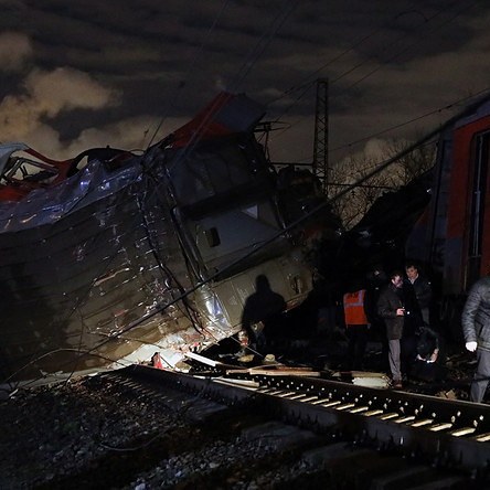 По данным МЧС, машинист электрички, который столкнулся с поездом, применил экстренное торможение из-за человека, перебегающего железнодорожные пути. По другим сведениям, никакого перебегающего человека не было.