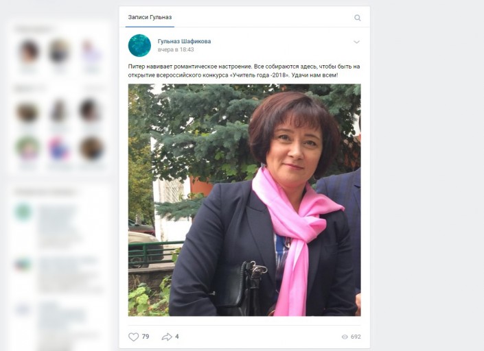 23 сентября на страницах Шафиковой в Instagram и во "ВКонтакте" появился пост о ее рабочей поездке в Петербург, при этом в двух предложениях были допущены две орфографические ошибки. Вскоре они были исправлены, но затем записи удалили. Чиновница назвала произошедшее экспериментом ради привлечения внимания к своим аккаунтам и закрыла свои страницы в соцсетях.