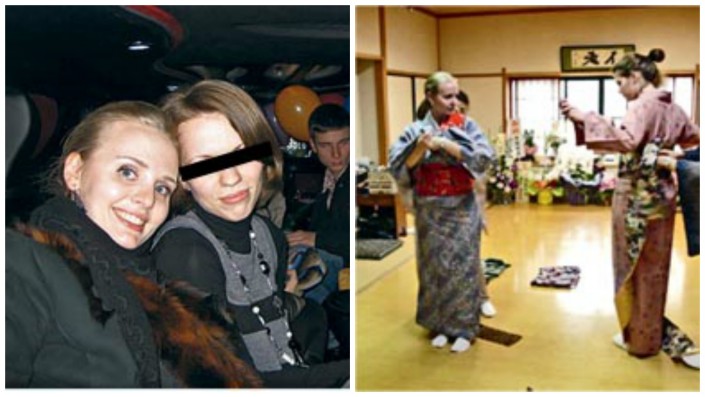 На дне рождения подруги, Москва, 2013 год (фото слева). Мария (слева) берет урок японских танцев, Токио, 2009 год (фото справа). © thenewtimes.ru