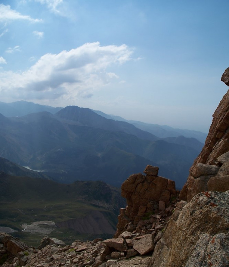 Тропа выведет вас на перевал Мраморный, по бокам которого располагаются два ущелья: Большое Алматинское и Походное. Начиная с этой точки маршрут становится сложнее: ваша задача - обойти с левой стороны скальные массивы и перелезть через крупные валуны. Преодолев их, вы закончите большую часть пути.