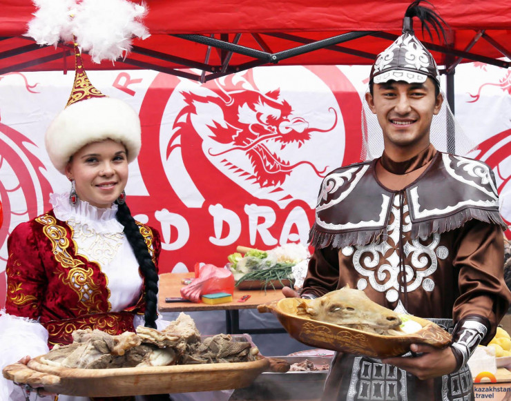 На фестивале можно найти самые разнообразные блюда, но преобладает, конечно же, мясо. Бешбармак, куырдак и шашлык здесь можно попробовать не в одном исполнении, одновременно наблюдая за "битвой" лучших поваров страны, участвующих в конкурсах на приготовление лучших баурсаков, бешбармака и других популярных блюд. Так как в нашей республике проживают представители 130 этносов, казахстанская кухня - не только казахская. Жители Казахстана не представляют себе жизнь без русского борща, узбекского плова или уйгурского лагмана.