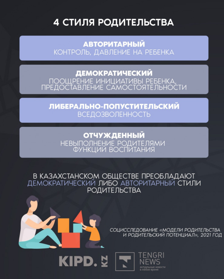 Из существующих моделей родительства в Казахстане, согласно данным исследования, преобладают два вида: демократический и авторитарный.