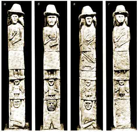В августе 1848 года в реке Збруч (приток Днестра) на западе Украины была найдена довольно странная каменная скульптура, которую нарекли Збручским идолом. Она была выполнена из серого известняка в форме четырехгранного столба высотой 2,67 метра. Дата создания идола - приблизительно X век.