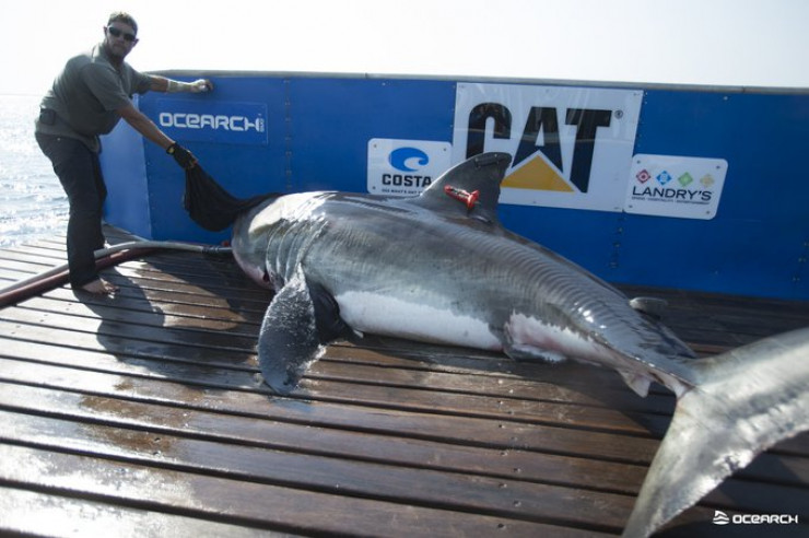 Морские исследователи из организации Ocearch (США) объявили о появлении большой белой акулы по кличке Кэтрин, за которой ученые следили через спутник с помощью трекера, сообщает портал "Вокруг света".