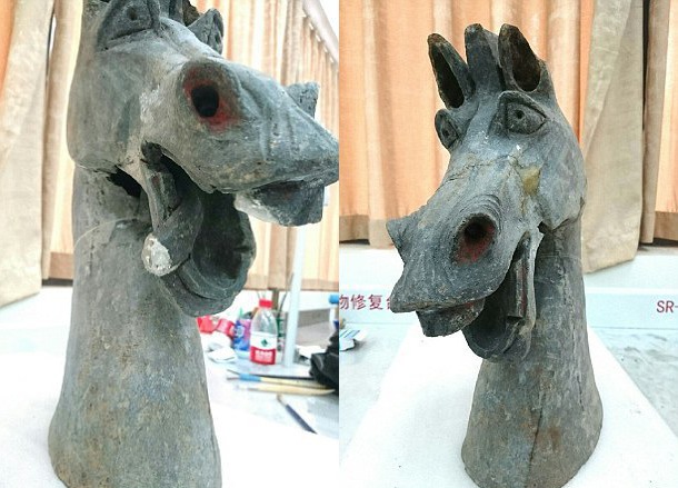 По словам ученых, древняя лошадиная голова была изготовлена почти 1 800 лет назад. Нашли ее во время земляных работ по расширению аэропорта в городе Чэнду в 2013 году.