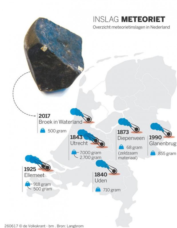 Для Нидерландов находка подобного небесного тела является настоящим событием. Хотя в среднем на территорию этой страны падает по одному метеориту раз в три года, за всю историю было обнаружено лишь шесть из них, в предыдущий раз - в 1990 году.