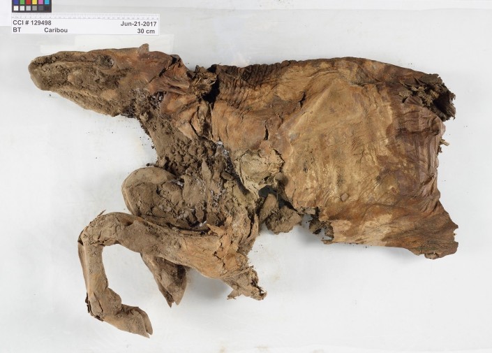 Частично сохранившуюся мумию карибу (голову, туловище и передние ноги) обнаружили в золотоносной шахте, которая находится недалеко от города Доусон. "Мы полагаем, что, вероятно, это старейшие в мире мумифицированные ткани кожи, волос и мышц млекопитающих", - говорит палеонтолог Грант Зазула.