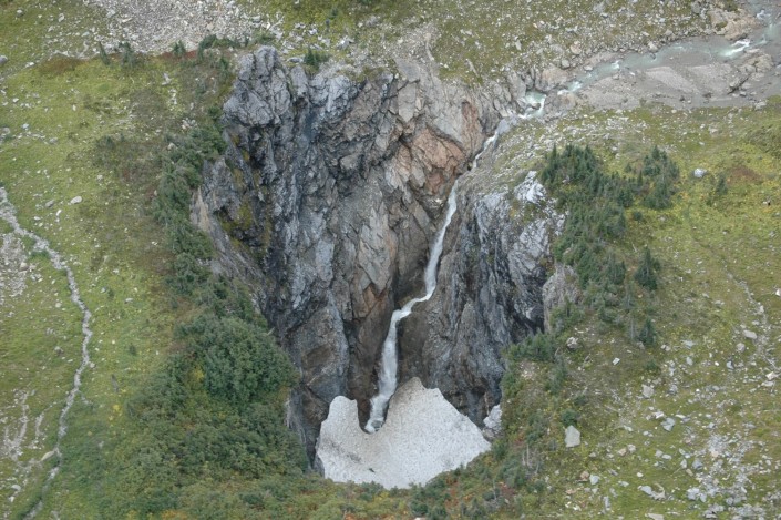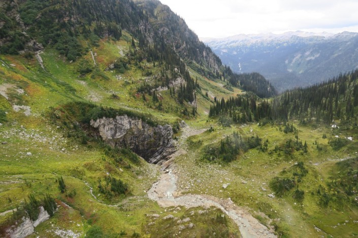 Впервые ее увидели с вертолета в апреле этого года в Провинциальном парке Уэллс-Грей (Gray Provincial Park). На протяжении большей части года пещера покрыта снегом. Теперь из-за глобального потепления снежный покров постепенно исчезает, и гигантское углубление в земле случайно заметили представители природоохранного министерства Канады, проводившие с воздуха подсчет оленей.