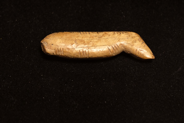 Размер фигурки невелик: 42 миллиметра в длину, 8,5 миллиметра в ширину и 11 миллиметров в толщину. На ее поверхность нанесен орнамент - 18 рядов по четыре насечки.