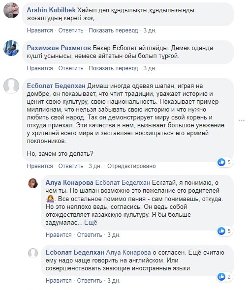 Бастапқыда Есболат Беделхан Facebook желісіндегі парақшасында Димаштың басқа елдердегі концерттерінде бекер домбыра шертетінін айтқан. Алайда пікір жазғандар одан ойын толығырақ жазуын өтінген.