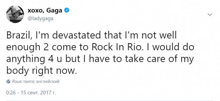 О своей госпитализации певица написала в Twitter
