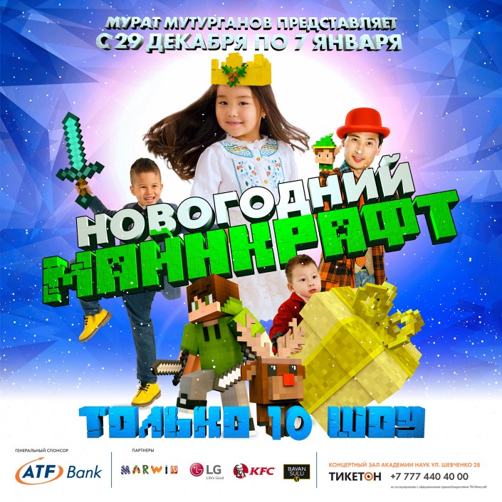 Как сообщается в пресс-релизе, "Новогодний Майнкрафт" - это уникальное театрализованное цирковое шоу, в котором артисты вместе со зрителями создадут собственный неповторимый мир и прекрасное праздничное настроение.