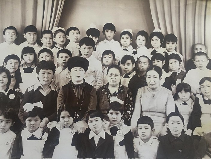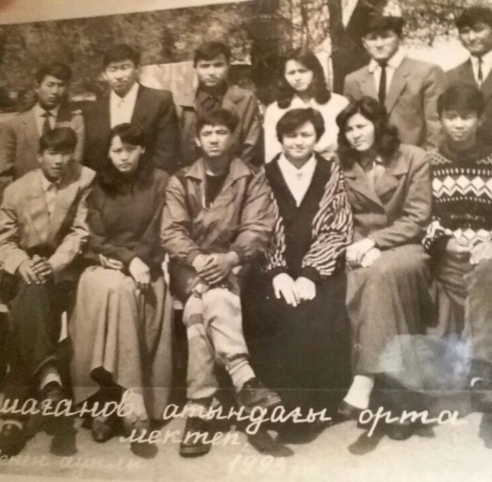 "Қазақстан, Ақтөбе қаласы, 32-мектеп гимназиясы, 1-сынып. 2, 3, 4 деген баға алатын балалар, жаман балалар, деп ойлайтын кезім. Мектепте ұнатып қалған қыз үшін ұлдармен төбелесетін кез ғой! Бақытты балалық шағым үшін: ата-анама, мектебіме, ұстаздарыма рақмет!!!! Ностальгия...", - деп жазған әнші жариялаған суретінің сипаттамасына.