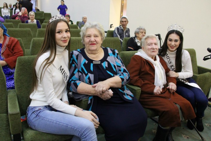 Участницы национального конкурса "Мисс Казахстан-2015" посетили КГУ "Медико-социальное учреждение для престарелых и инвалидов" в Астане, сообщает корреспондент Tengrinews.kz.