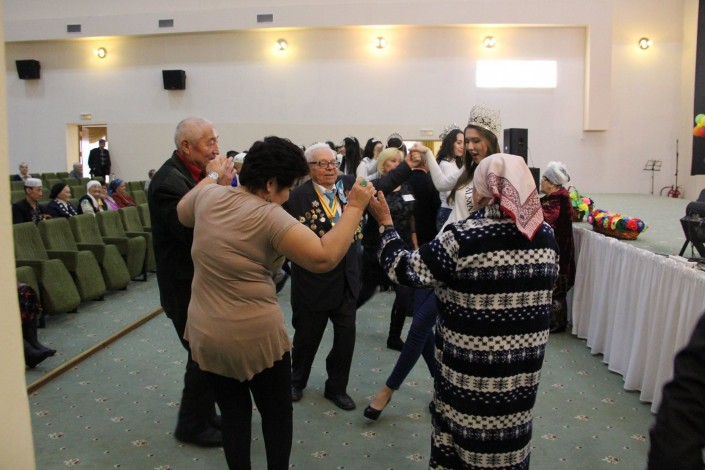 После слов напутствия пожилых людей, начался настоящий праздник. Девушки приглашали дедушек на белый танец, позже все вовсе пустились в пляс.