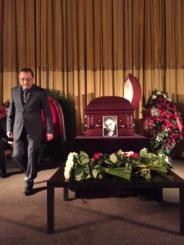 "Я хочу официально здесь подтвердить - весь Казахстан почитает, уважает, любит Владимира Толоконникова. Он узнаваем, почитаем и любим не только в Казахстане, но и в России. Россияне его больше знают благодаря кинематографу, в Казахстане же его ценят за сценический талант. Я думаю, что его уход - это обрыв одной нити, которая связывает наши страны, наши народы, но хочу выразить убеждение, что благодаря его творчеству возникло, родилось огромное множество нитей, связей, родственных уз между Россией и Казахстаном".