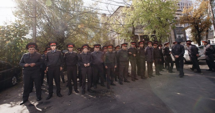 На улицах Бишкека царит спокойствие. Горожане живут обычной жизнью. Милиционеры дежурят на избирательных участках, а вдоль проспектов их не видно.