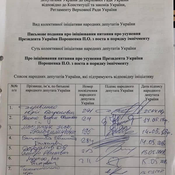 По украинскому законодательству для обсуждения на пленарном заседании и принятия решения об инициировании вопроса об отстранении президента требуется 226 голосов.