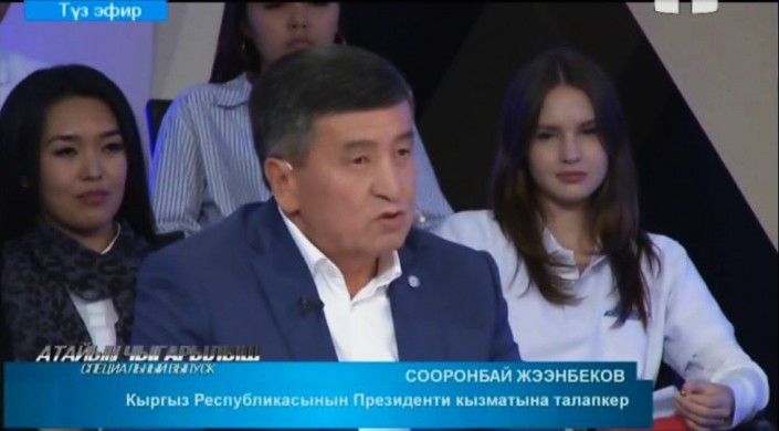 После концерта Сооронбай Жээнбеков отправился в студию государственного телеканала КТРК, где принял участие в специальном выпуске ток-шоу "Ой ордо".