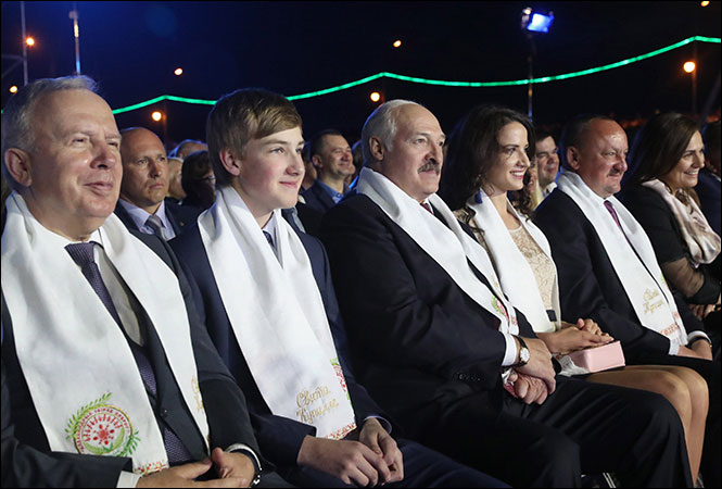 Снимок сделан во время республиканского праздника "Купалье". Справа от Лукашенко сидел его младший сын Коля, а слева - молодая брюнетка.