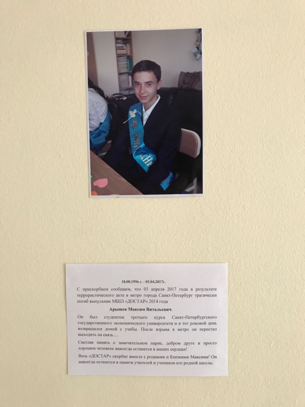 Стоит добавить, что в школе "Достар" в Алматы, где учился Максим, повесили его портрет, рядом зажгли свечи, ученики приносят цветы.