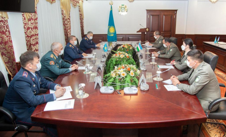 Министр внутренних дел Казахстана Ерлан Тургумбаев встретился с командующим Национальной гвардией Узбекистана Рустамом Джураевым, передает Tengrinews.kz.