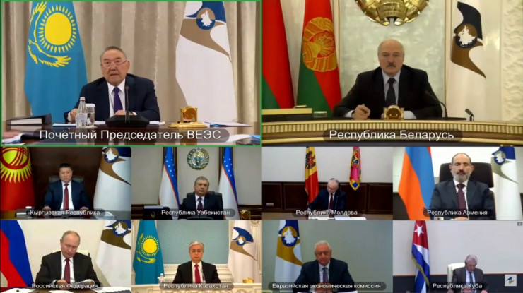 "Текущий год был насыщен негативными событиями, включая тяжелейшую пандемию, экономический кризис, конечно, непростые выборы, которые прошли в Беларуси, события, произошедшие в Армении. Все это мы наблюдали и переживали. Надеюсь, что это будет позади. Сама пандемия вновь показала важнейшую роль государства в кризисные времена. Благодаря оперативным мерам государственного регулирования нам удалось избежать негативных сценариев развития пандемии, неконтролируемого спада экономической активности, значительных потерь человеческого капитала. Только государственная поддержка обеспечила стабильность на внутренних рынках продовольственной, лекарственной и другой социально значимой продукции. С удовлетворением отмечу высокий уровень кооперации государств - членов ЕАЭС и взаимного обмена гуманитарной помощью в рамках борьбы с пандемией COVID-19", - сказал Первый Президент Казахстана.