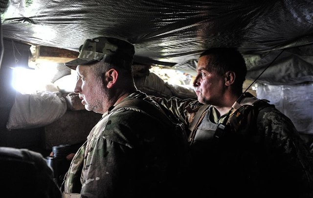 Секретарь Совета национальной безопасности и обороны (СНБО) Украины Александр Турчинов посетил украинских военных на передовых позициях в Донбассе. Он побывал в Марьинке и Красногоровке, сообщает портал "Сегодня".