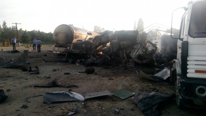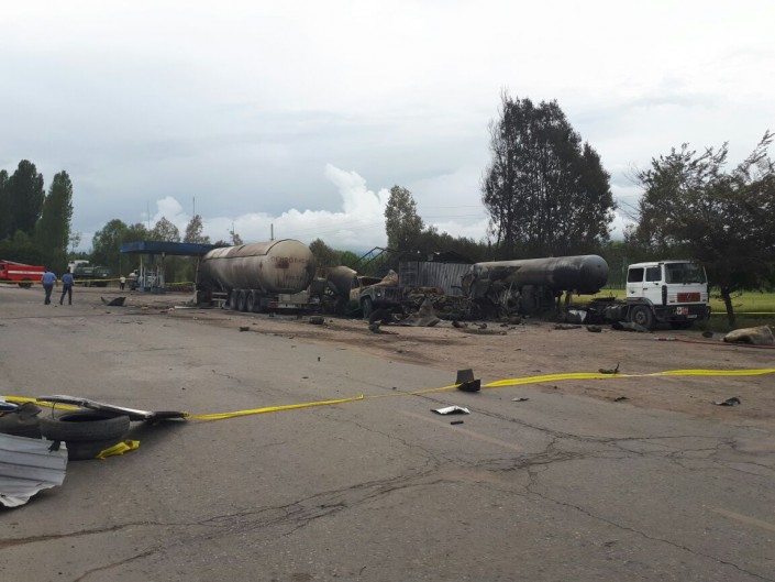 В результате мощного взрыва на частной автозаправочной станции в Иссык-Кульской области 2 человека погибло, 8 пострадали. Также, по данным МЧС КР, полностью выгорело пять автомобилей, включая два крупногабаритных бензовоза. Ранее очевидцы происшествия сообщали, что пожарные машины прибыли на место ЧП без воды. Но как пояснили в МЧС Кыргызстана, газозаправочная станция абсолютна не была приспособлена к тушению огня. Пожарным приходилось закачивать воду из ближайших арыков. В результате тушение пожара затянулось на три часа.