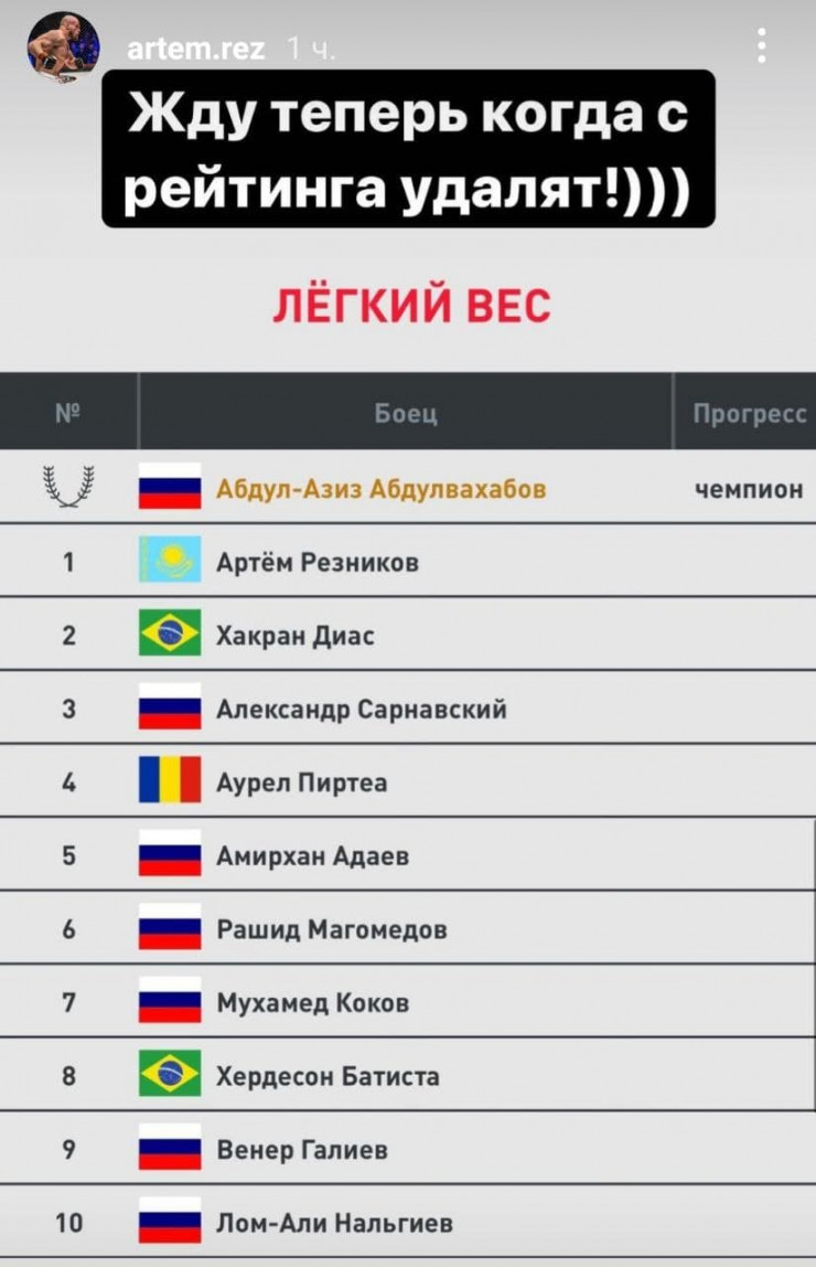 Ранее стало известно, что Резников вступил в конфликт с ACA из-за разногласий по поводу боя-реванша с чеченским бойцом Юсуфом Раисовым, которого казахстанец побеждал в сентябре 2020 года.