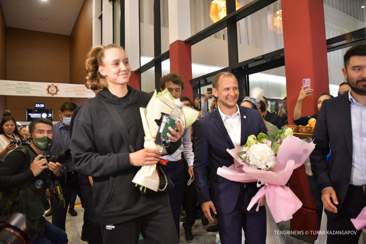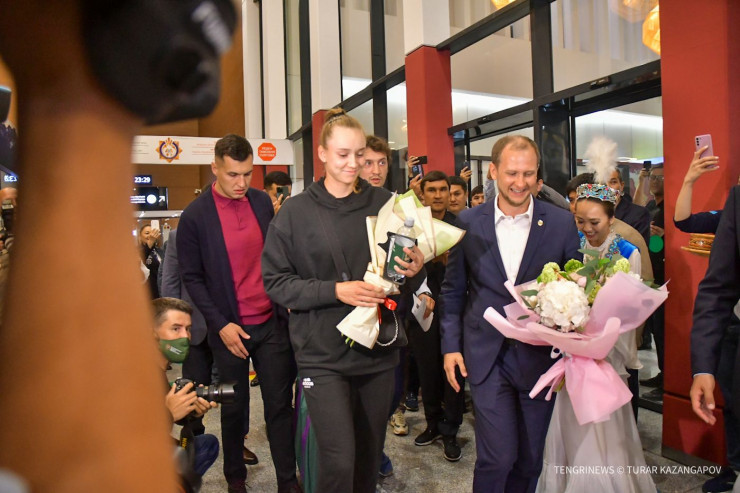 Казахстанская теннисистка Елена Рыбакина, одержавшая историческую победу на Уимблдонском турнире, вечером в понедельник, 11 июля, прилетела в Нур-Султан. В аэропорту столицы спортсменку встречали родственники, друзья, чиновники, представители СМИ и многочисленные болельщики, сообщает корреспондент Tengrinews.kz.