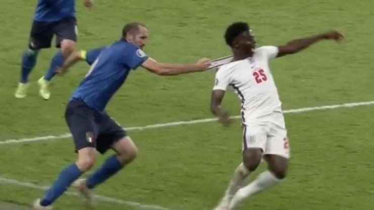 Ранее английские фанаты заявляли, что капитан сборной Италии Джорджио Кьеллини должен был быть удален с поля за фол против Букайо Сака. В одном из эпизодов в концовке встречи итальянский защитник открыто прихватил соперника за футболку, не дав тому убежать в потенциально опасную атаку. За данное нарушение Кьеллини получил желтую карточку.