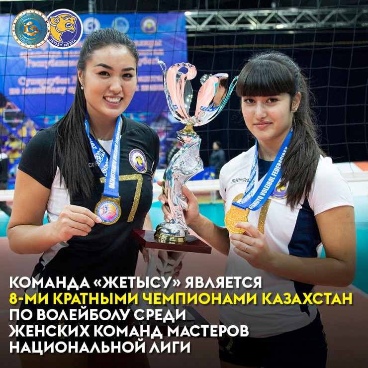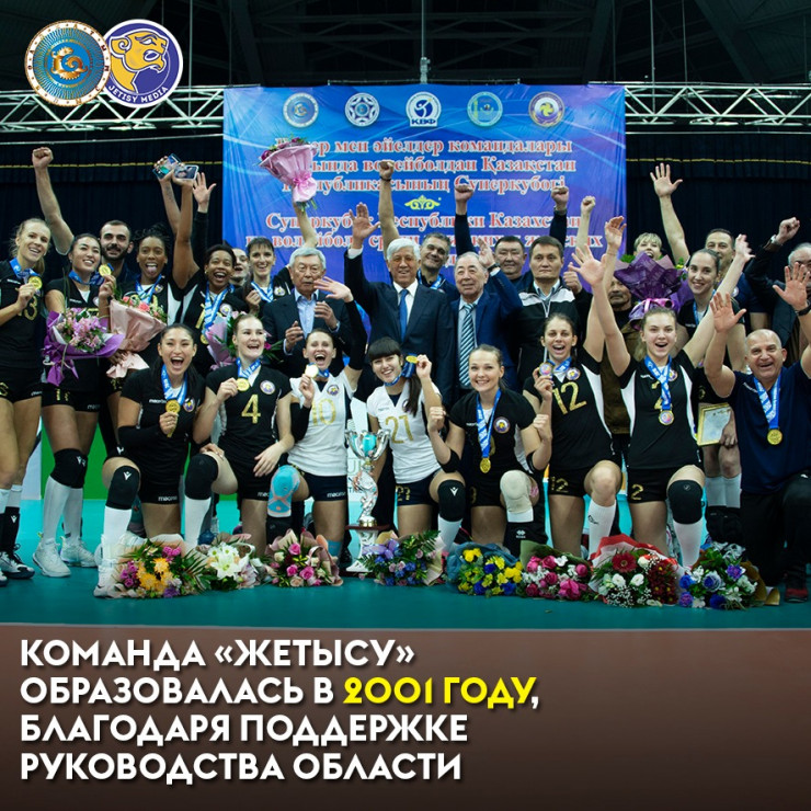 Отметим, что профессиональный волейбольный клуб "Жетысу" неоднократно был на вершине пьедестала. Команда "Жетысу" является 8-кратным чемпионом Казахстана по волейболу среди женских команд мастеров национальной лиги, 8-кратным обладателем Кубка Республики Казахстан, 2-кратным обладателем Суперкубка Республики Казахстан, серебряным призером Спартакиады Республики Казахстан, серебряным призером чемпионата Казахстана среди женских команд Национальной лиги, чемпионом Спартакиады Республики Казахстан, 7-кратным серебряным призером чемпионата Казахстана, бронзовым призером чемпионата Казахстана, участником чемпионата Азии среди женщин-юниоров в городе Хошимин (Вьетнам), где из 12 азиатских стран заняла 7-е место, бронзовым призером Азиатских игр в Гуанчжоу (Китай) в составе сборной Республики Казахстан, а также обладателем 5-го места на чемпионате Азии среди клубных команд.