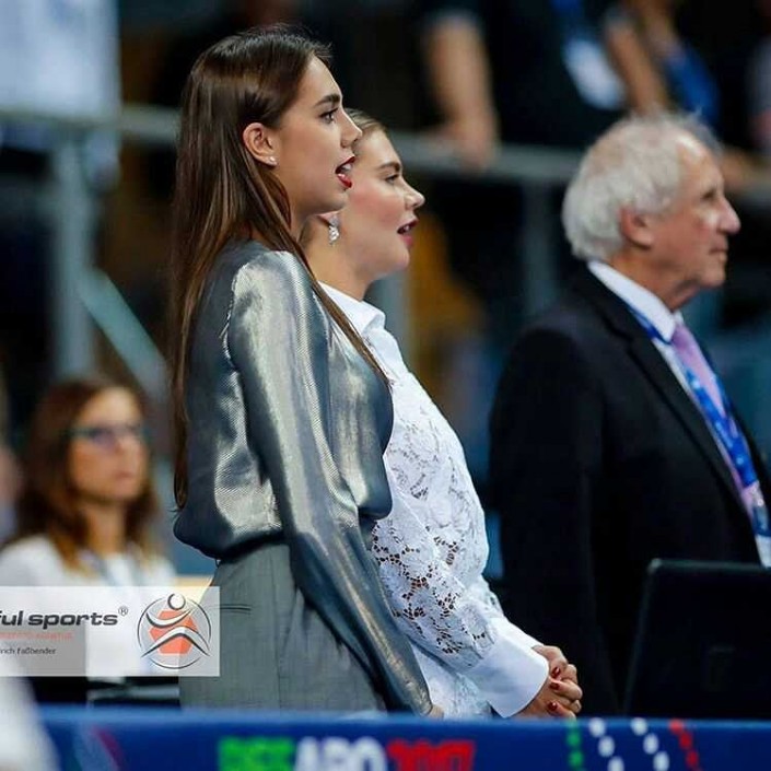 На прошедшем в Италии чемпионате мира по художественной гимнастике внимание болельщиков и журналистов было обращено не только на спортсменок, но и на первую в истории российскую посланницу чемпионата Алину Кабаеву. Так, британские таблоиды Daily Star, Daily Mail и другие отметили, что появляясь на публике экс-олимпийская чемпионка открыто демонстрировала "обручальное кольцо".