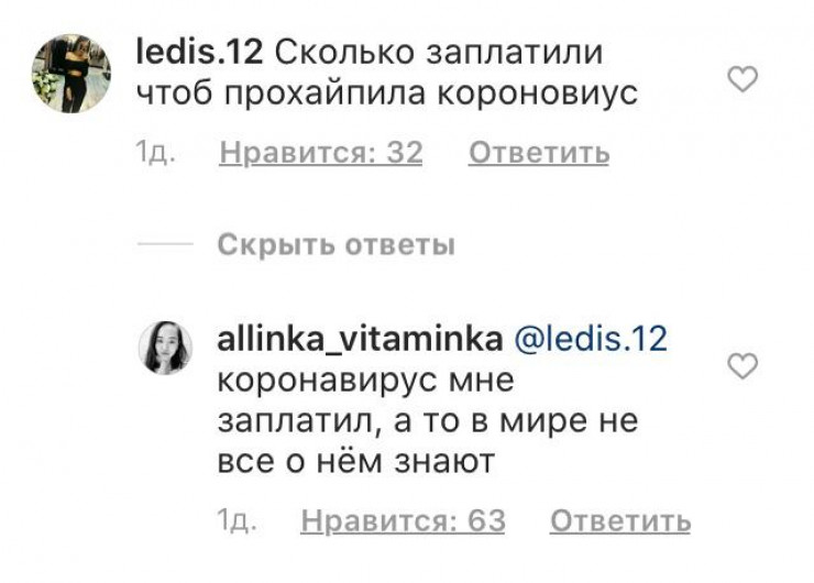 "Кто-то по WhatsApp пустил рассылку со ссылкой на мой Instagram, что я девушка из Павлодара, которая скрывается от властей, прилетела с Мальдив и заражаю людей. На меня посыпалась куча проклятий. Мне пришлось везде указать, что я из Алматы и никогда не была в Павлодаре. И это обернули против меня, якобы я прикрываюсь. Пишут мне: "Ты специально указала, чтобы мы от тебя отстали, но ты нас не проведешь, ты из Павлодара, ты такая-сякая". Как можно человеку доказывать что я - это не я? Они переходили в мой Instagram и даже не смотрели, не читали, что я пишу, что рассказываю", - поделилась Алина.