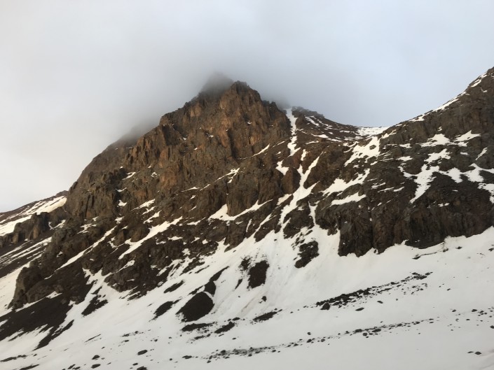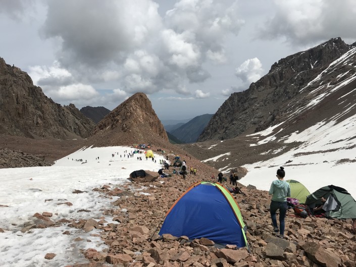 Обычно палаточный лагерь разбивают близ ледника Богдановича. Местность каменистая, кое-где лежит снег. Погода и температура в горах меняются почти каждый час. Яркое солнце может резко сменить снег и холодный дождь. На этот раз ночевать пришлось под дождем.