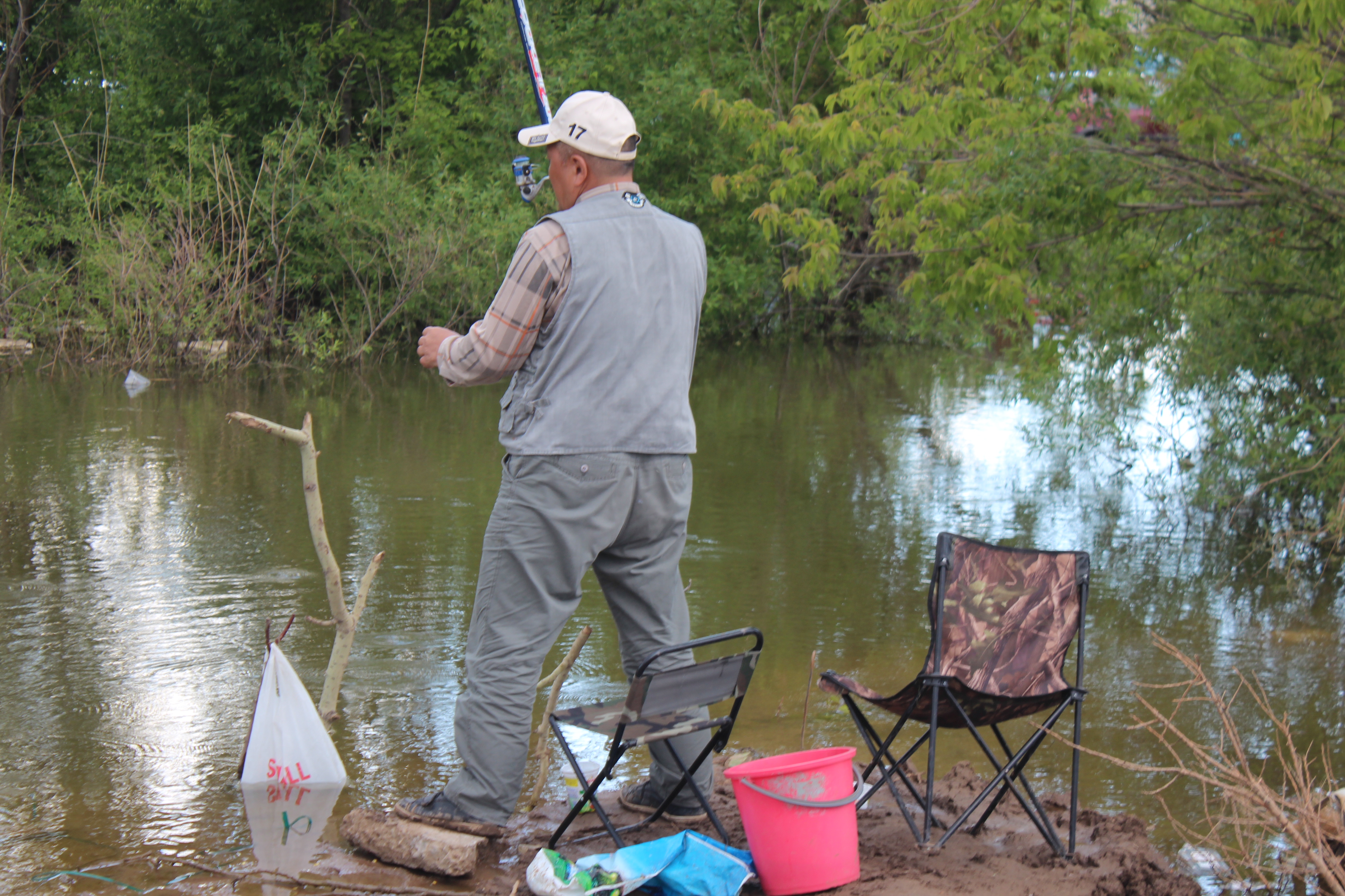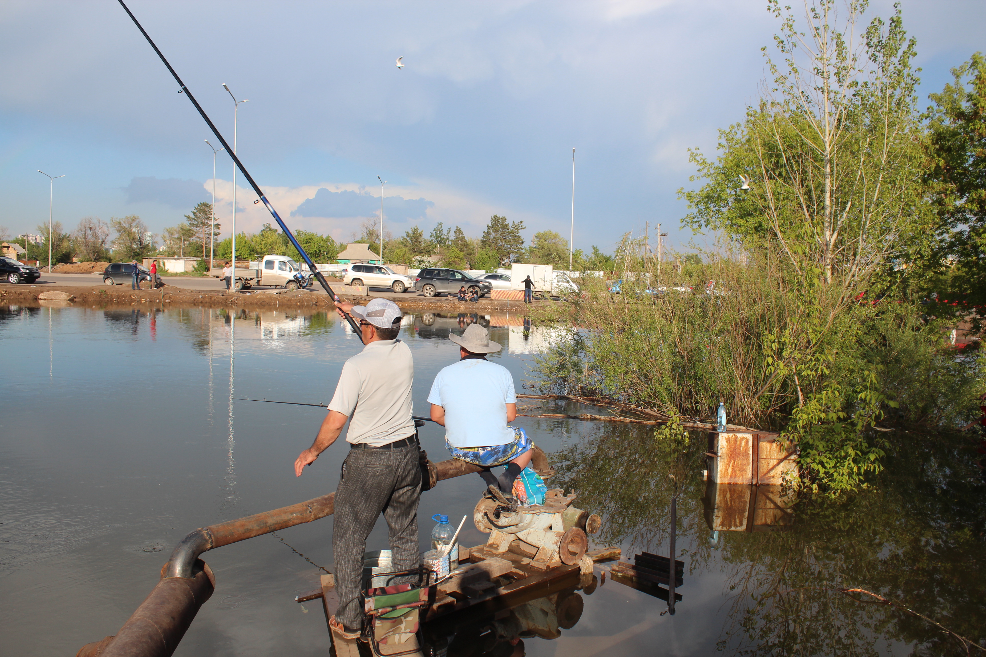 Местные говорят, что рыбным это место стало дней 20 назад. Кто-то начал рыбачить, а потом слава о чудо-речке распространилась по всему городу, с тех пор здесь целыми днями людно.