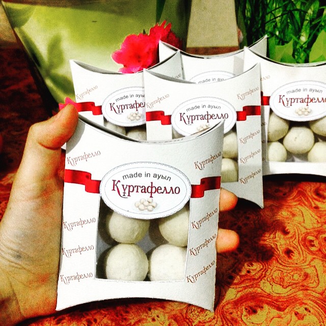 "Занималась кумысом, искала в Интернете что-то интересное, чтобы привлечь клиентов, потому что в Шымкенте конкуренции много, кумыса много, хотелось что-то новенькое добавить. Увидела название "куртафаелло", мне идея понравилась. Решила немного изменить на - "құртафелло". У нас - самый вкусный курт, который доставляют из аула. Хотелось сделать бренд, заинтересовать людей куртом", - говорит предприниматель. Она отметила, что в среднем цена одной упаковки начинается от 250 тенге.