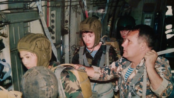 "Именно десантником быть не мечтала, но я хотела в полиции где-то работать, то есть форма всегда привлекала. Потом сюда пришла вольнонаемной, 4,5 года проработала и в 2001 году призвалась на военную службу по контракту. Сразу же начала совершать прыжки. Сначала допрыжковая подготовка, где нас учили, как правильно укладывать парашюты, отделяться от вертолета, психологический тренинг, нужно было переступить эту рамку", - вспоминает военнослужащая.